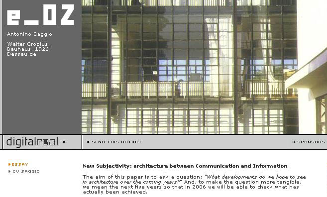 New Subjectivity"If transparency provided the aesthetics and ethics, the reason and the technique for a world that rationally wished to see the progress of civilisation, and better standards of living for the vast masses of workers in industry (and it succeeded!), I hope that interactivity may serve to focus contemporary thought on an architecture that, having overcome the objectivity of our needs, can respond to the subjectivity of our wishes. "