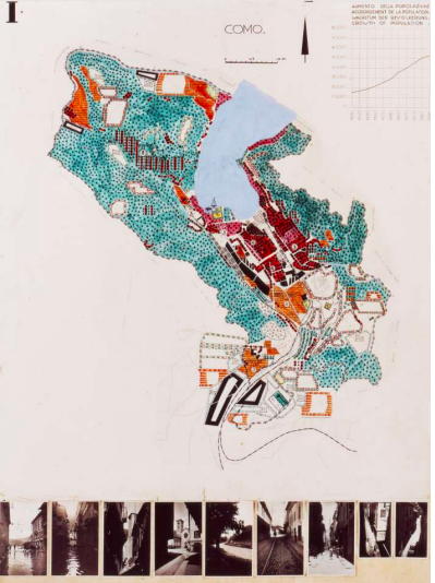 “Il Piano regolatore di Como – vinto con il gruppo CM8 e illustrato da Terragni in anteprima al Ciam – è uno sforzo serio di previsione della crescita della città sulla base di dati che, una novità nel 1934, vengono faticosamente raccolti e analizzati. Non vi è alcun formalismo (Pagano li chiamava merletti ritagliati) in questo piano regolatore, ma uno sviluppo della città aperta al territorio circostante e alla regione. Per il centro antico, si applicano in diversi punti le tecniche di diradamento che Terragni aveva già studiato negli anni Venti e si sottolinea la necessità di «urgente e radicale risanamento» dei malsani quartiere della Cortesella, di Macello vecchio e di Via Vitani. Piuttosto dei massicci sventramenti promossi in altre città italiane o le ancora più radicali soluzioni proposte da Le Corbusier per Parigi, i progettisti indicano, con attenzione chirurgica, rettifiche e parziali allargamenti di sedi stradali già esistenti. Esse hanno però esclusivo carattere di «viabilità interna» (nè di attraversamento, nè di monumentalità) dato al contempo viene proposta una viabilità anulare esterna della cinta murata".