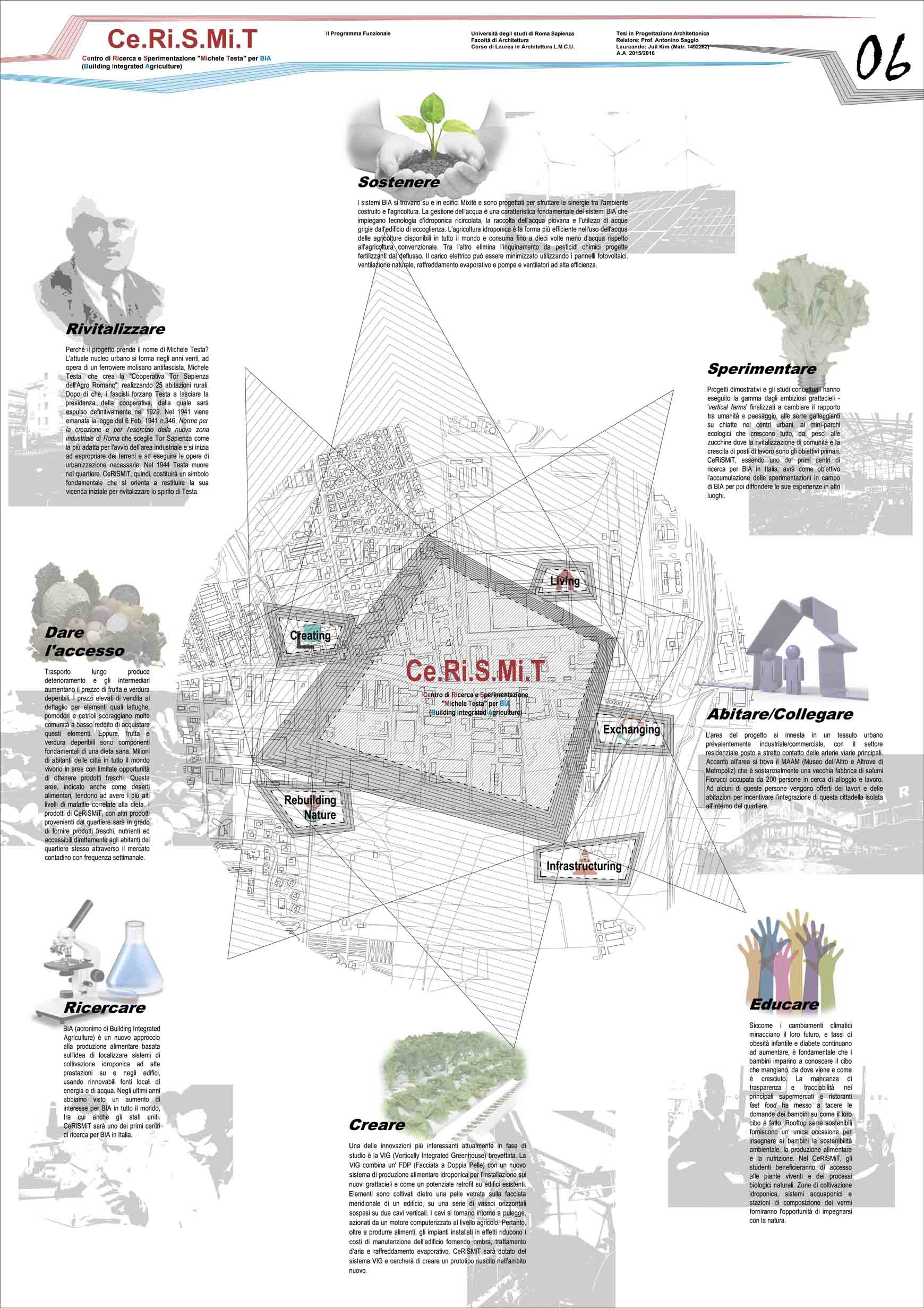 Con l’acronimo CeRiSMiT si identifica il progetto del Centro di Ricerca e Sperimentazione “Michele Testa” per BIA (Building Integrated Agriculture). Questo è il primo progetto arrivato a definizione di tesi dentro il Progetto di cattedra Unlost Territories.