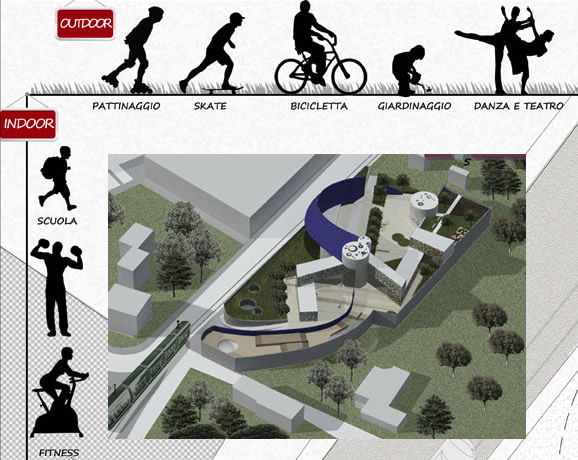 “Timelines” Uno scenario mutevole per attività ludiche e didattiche lungo la Urban Green Line di Cristina Interdonato è un progetto che si muove lungo le linee del tempo in una duplice direzione: quella della continuità dell'uso (il centro ospita attività diverse 24 h su 24 h) e quella della continuità delle fasce di età degli utilizzatori (un bacino di utenti che va da 0 a 90 anni). Il tempo è il motore di tutto ciò che avviene nel progetto .....