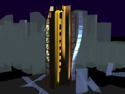 | Immagine 3 : Vedute notturne della Torre dei Venti, di Toyo Ito. | ||