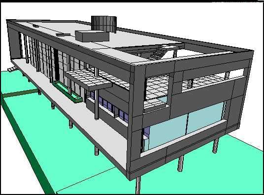 Per finire, il lavoro in un ambiente di modellazione come quello descritto in questo intervento ha, come si diceva nellíintroduzione, delle relazioni di ritorno per il fare progettuale. Si è di fronte a un modello vivo, capace di rispondere alle sollecitazioni dellíarchitetto sia per le infinite viste che consente sia soprattutto per la capacità di essere costantemente manipolato. Questo è un risultato semplicemente non raggiungibile con nessuna tecnica tradizionale e rappresenta uníinnovazione per le nostre abitudini e per le nostre modalità progettuali. Avere a disposizione un modello di questa natura spinge a considerare costantemente gli aspetti spaziali della composizione e a pensare il progetto come una serie gerarchica di elementi vicina alle sue modalità costruttive [10].