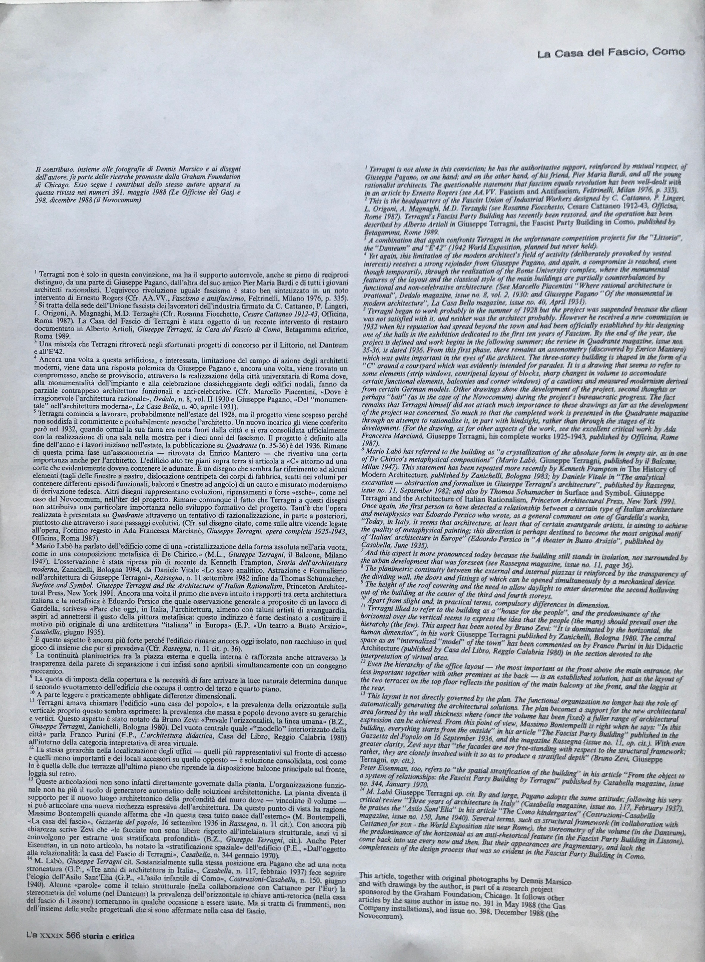 _______Progettare Pericolosamente. Violazione e Rischio nella casa del Fascio L’Architettura cronache e storia, n. 453-454, luglio-agosto 1989 (pp. 559-566)