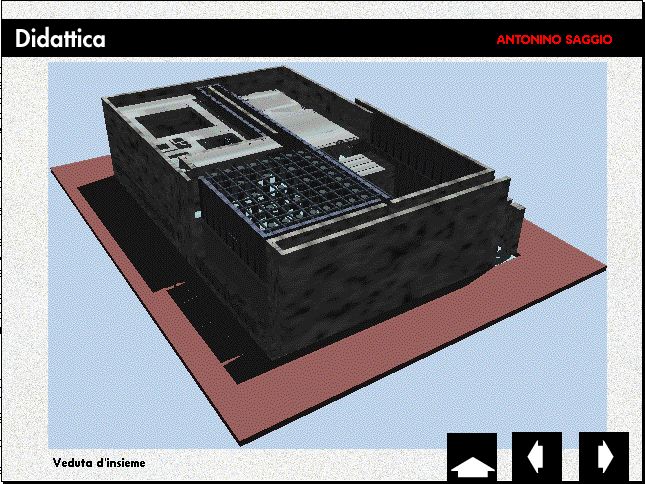 4. Infine, per la fase più lunga della costruzione del modello si possono utilizzare i personal computer (meno costosi e di più facile utilizzo) ma, dopo una traduzione dell'archivio in un formato di scambio come il DXF™, si può accedere a computer più potenti e veloci come quelli della Silicon Graphics™ in particolare per avere un percorso in tempo reale (che può essere registrato su cassetta) dentro l'edificio ricostruito.