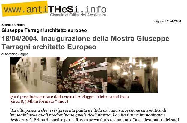 .... La storia di Terragni ha i toni della tragedia "antica" della tragedia "greca" e credo questo sia un'ottica per guardarne l'opera oggi, soprattutto da parte dei giovani, in anni così diversi da quelli. ...