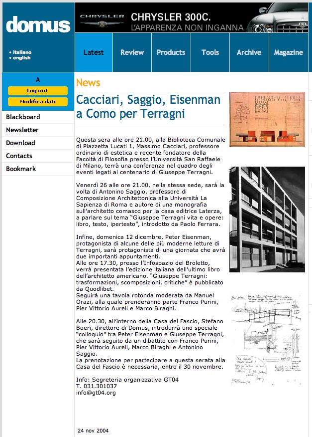 In English Conference on Giuseppe Terragni di AS (U. Cornelle, Duquesque Unviersity Dante Alighieri Society  2001) GO