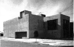 Production was almost immediately impressive and of good quality. In the beginning, there were buildings in a admittedly "Wrightian" vein, but ones which also revealed a knowledge of the Greene brothers and Schindler. He drew up zoning plans and designed stores, housing projects, offices and open air theaters and built almost thirty works. His oeuvre was well-accepted by the American professional class, so much so that in 1974 he became a Fellow of the AIA. Along with projects commissioned publicly or by businesses, he had some small opportunities to experiment in several decorating jobs and two house-studios for artists: the Danziger (a minimal composition of volumes closed-off to the city) and the Davis (a research into the dynamic perception connected to the trapezium; an irregular four-sided figure).