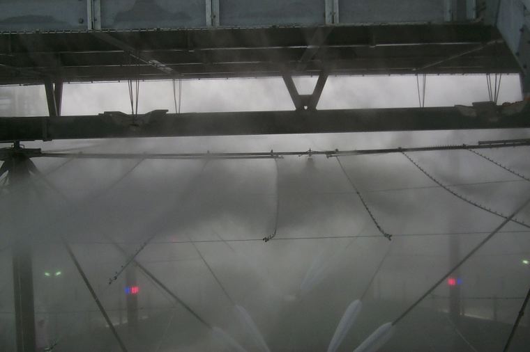 Installations of Studio Teddy Cruz Sand diego (installation at ArchiLab04)L'architettura muta continuamente è letteralmente strutturalmente una nuovala di informazione prende i dati dell'ambiente circostante e li trasforma li metabolizza in tempo reale, l'acqua si vaporzizza assume uno stato gassoso l'informazione è entrata strutturalmente nelle fibre di oggi e ne fanno quadro presenza rilanciandole nel domani