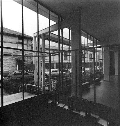 ....Il prospetto a nord è una delle composizioni più belle di Terragni. Un blocco solcato da tre lunghe asole si distacca dalla parete retrostante