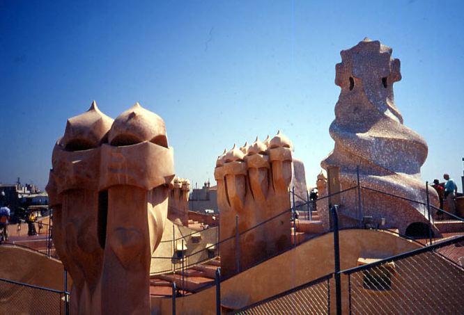 of varying sizes, forms and materials, interspersed with more sober service