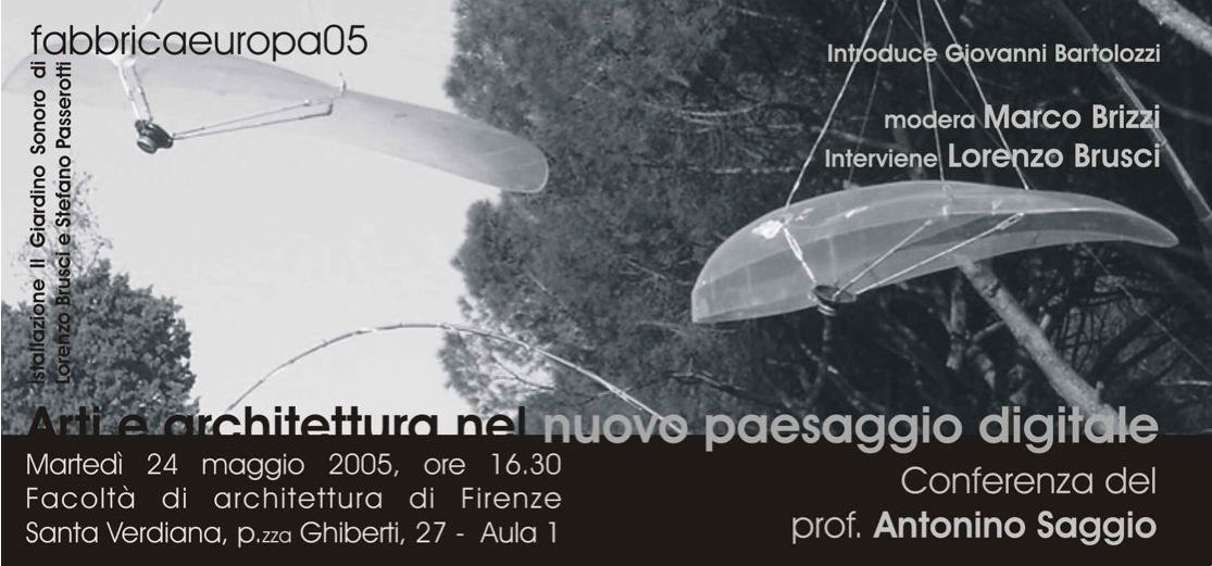 Le caratteristiche di questo paesaggio mutevole e mobile tra arte e architettura che pone l'ambiente  digitale al centro della riflessione è il tema della conferenza di Antonino Saggio che prende spunto dall'installazione del Giardino Sonoro,