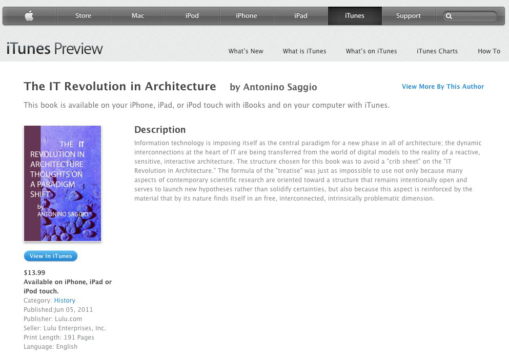 1. Antonino Saggio, "Informazione Materia Prima dell'Architettura", Op. Cit.,   # 118, September 2003 (pp. 5-10). >