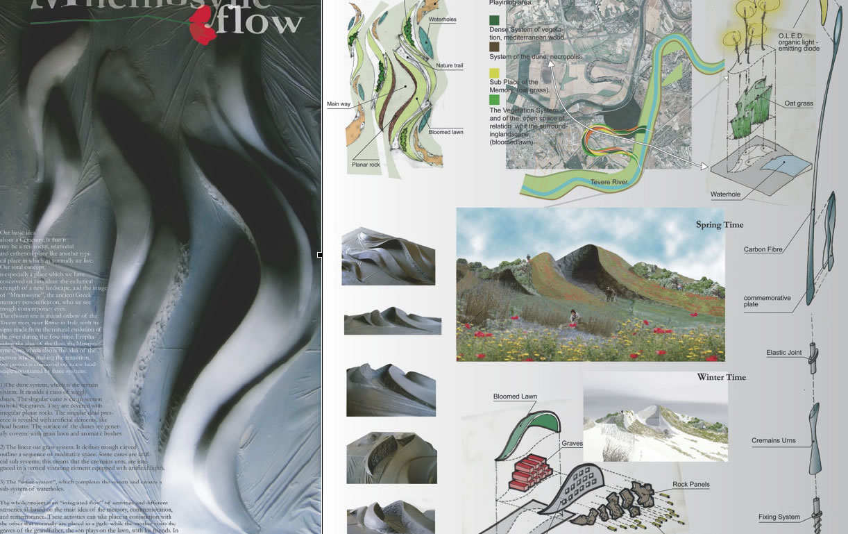 Among the research work of Nitro is the project Memnostyle for new issues of cemetery space that integrates land treatments, architecture and new hybrid design elements, the project “Urban Eirey” that proposes an integrated element for urban situation that integrates leisure sound and air treatment and the built prototype “Electronic Palm” (an hybrid object half natural half highly technological that uses Optical fibers, sound and sensors)