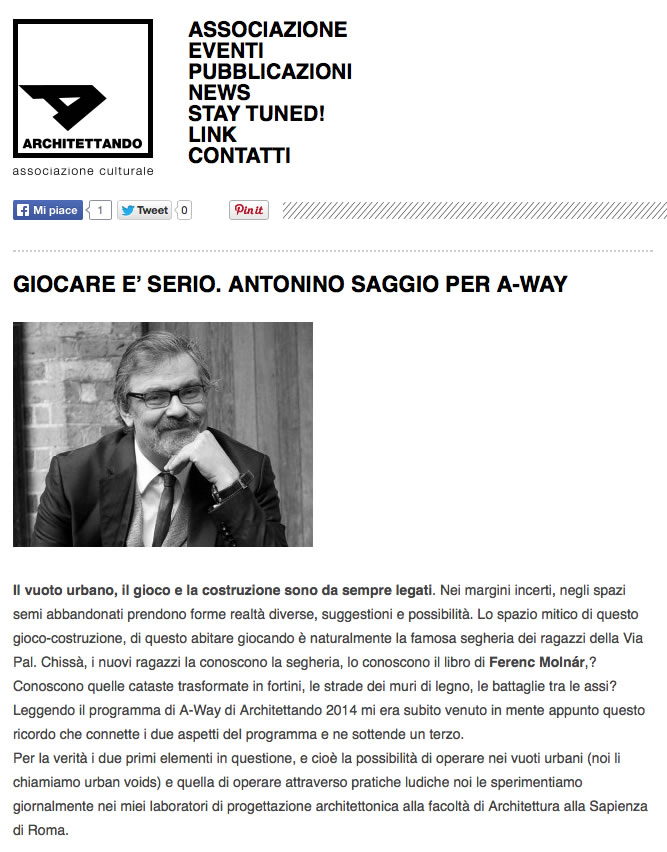 Antonino Saggio, ripoercorre il gioco come sistema di regole e di variazione e quindi principio di libertà nell'insegnamento della progettazione. Urban voida e Scacchiere