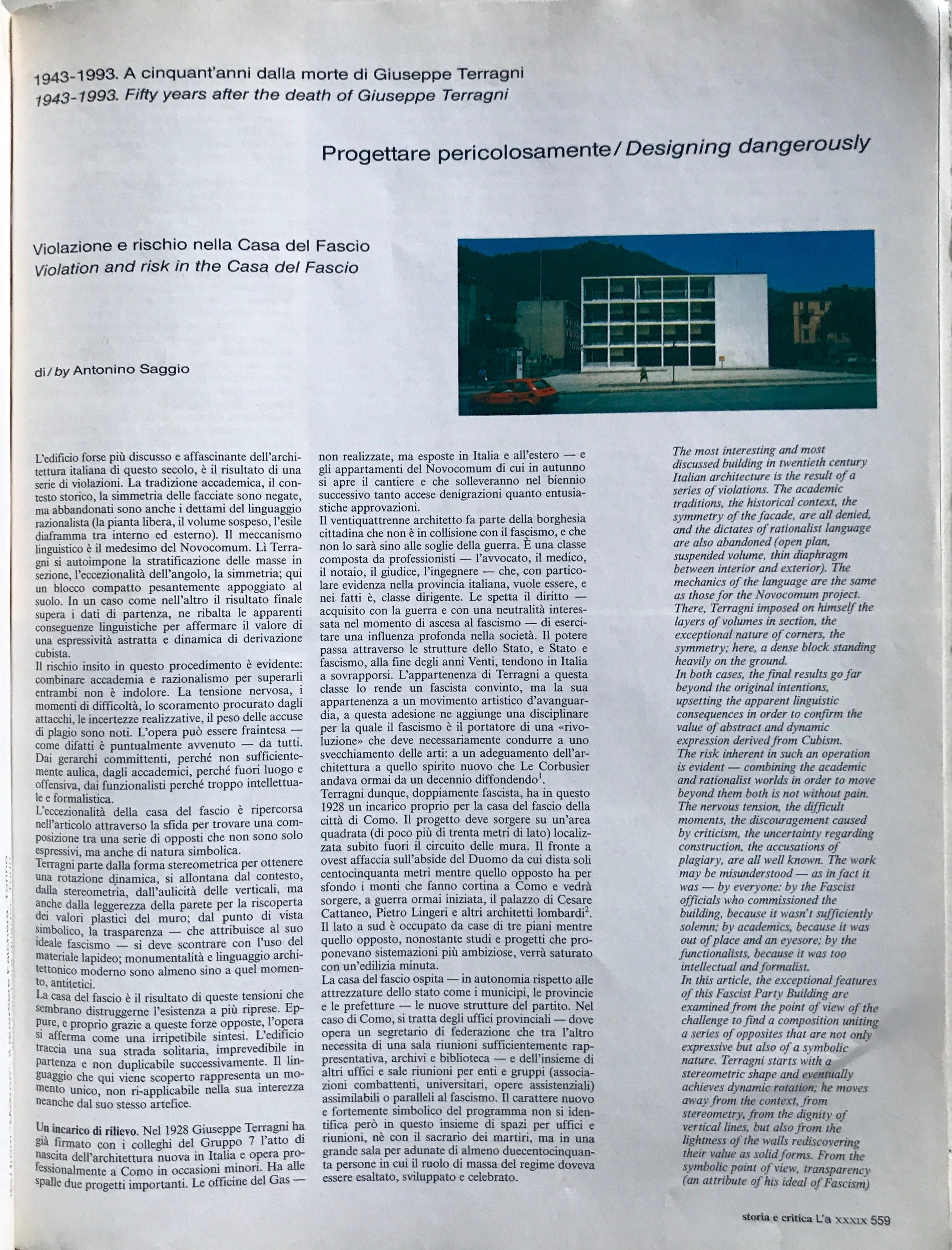 Leggi l'Articolo per il cinquantenario della casa del fascio Pubblicato su l?architettura cronache e storia nel luglio del 1993