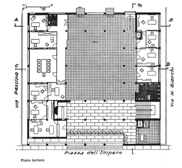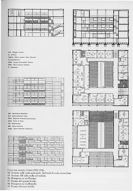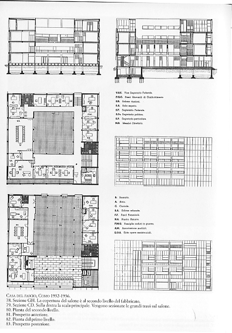 la parete stessa a racchiudere il volume, qui Terragni elabora il tema della doppia parete e del telaio. Invece del motivo a loggiato, l'architetto inventa un telaiogigante che raccoglie tutta la costruzione. 67