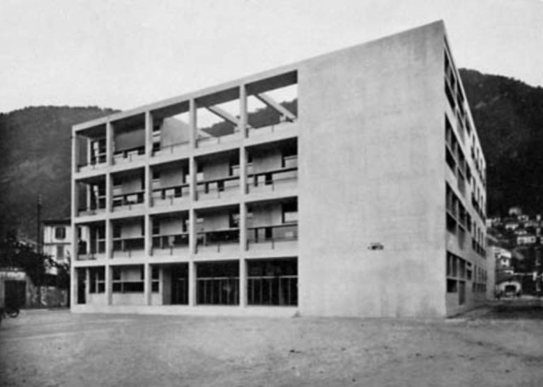 . È l'incorniciatura a telaio nella facciata d'ora in avanti «il telaio» che aveva fatto la sua prima comparsa nel retro dell'Officina del Gas, ma che è il motivo saliente della Casa del fascio progettata negli stessi mesi. Il telaio consente di avere una doppia parete: una sul fronte esterno (a protezione dalla luce e che delimita logge o portici) e l'altra, più arretrata, che raccoglie gli infissi.