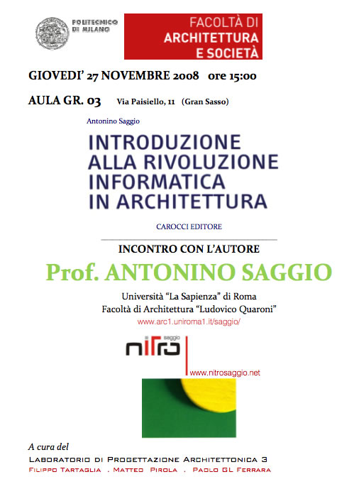 Examples from Antonino Saggio Chair at La Sapienza University Rone >