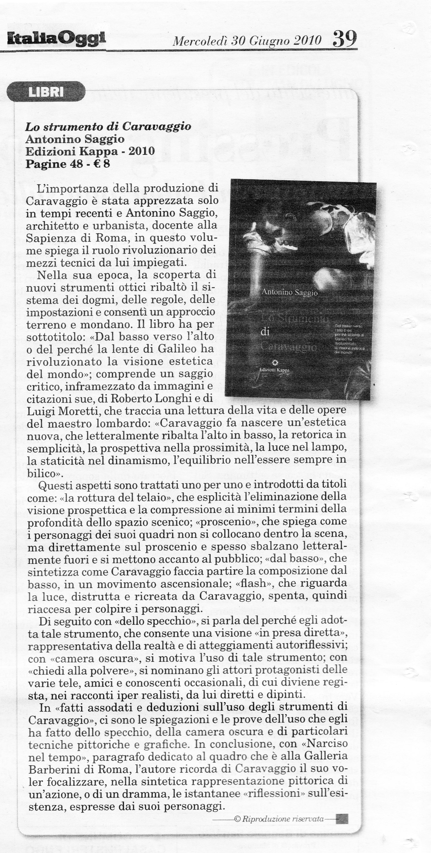 Antonino Saggio, Lo Strumento di Caravaggio, Edizione Kappa, Roma 2010 (3 edizione)
