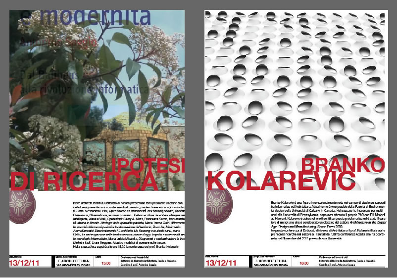 Examples from Antonino Saggio Chair at La Sapienza University Rone >