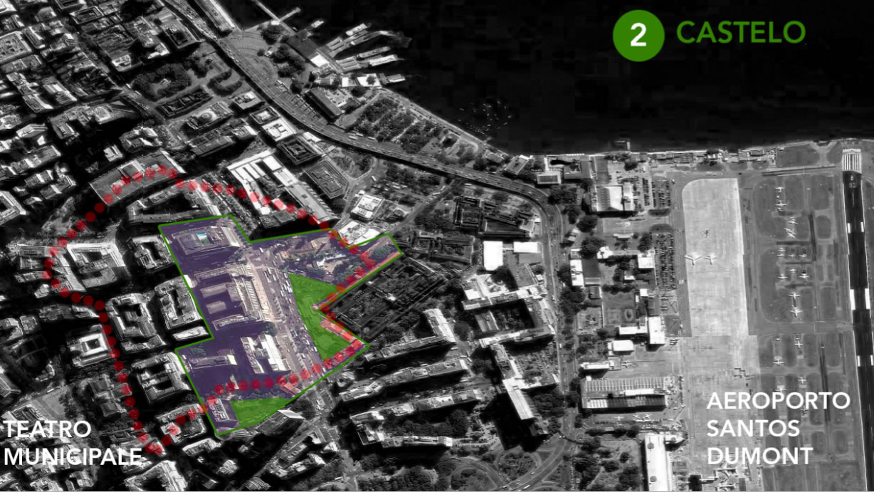 Come si vede il progetto si è sviluppato con una prima parte attraverso il disegno di un anello plurifunzionale "O Anel do Castel" che mette a sistema le molte situazioni che incontra nel suo percorso. Successivamente nascono due progetti basati sul Concetto di Mixitè e aderenti alle necessità riscontrate. In un caso è una stazione di autobus integreta ad altre funzioni sociali e pubbliche che si dispongopno anche attraverso lo scavo sotto la quota zero per articolare spazi e relazioni; nell'altro caso si tratta di Casa Italia, un complesso residenziale, di cui c'è richiesta per reinvigorire la residenzialità nel centro, che si innesta su un basamento pubblico articolato in spazi chiusi e aperti a cui si pensa di dare la funzione di centro gastronomico italiano a Rio.