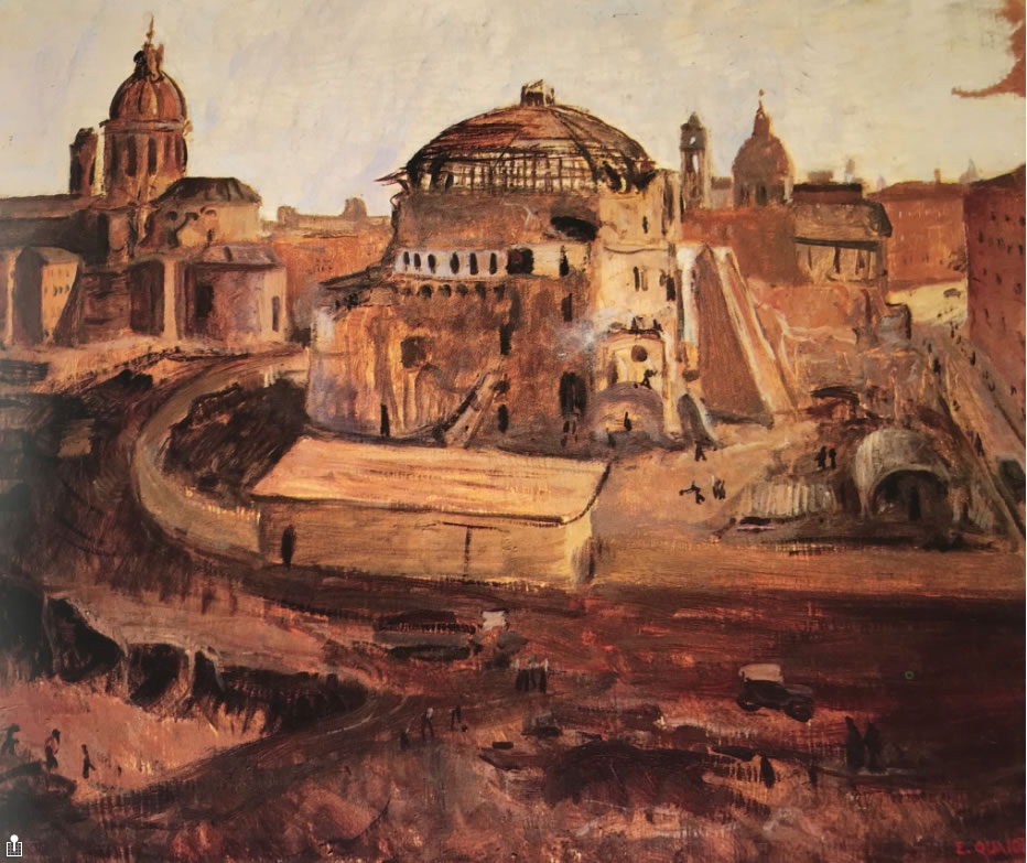 Demolizioni intorno all’Augusteo Eva Quajotto, olio su tavola, 51x60, 1936 ca.acquerello e in, Galleria comunale di arte modernbc-Roma.