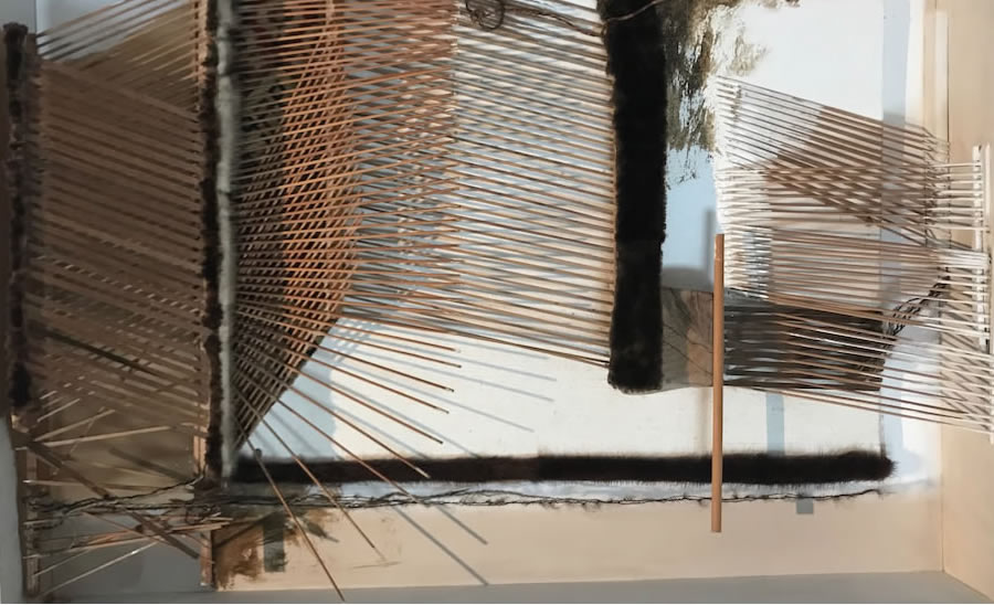 È anche la Mesopotamia del Tigri e dell’Eufrate che aprono estuari e si intrecciano con la sabbia e le dune e le rive. Sono le tessiture infinite dei pattern dei tappeti e delle stuoie che si proiettano magicamente nelle volte delle Moschee. Questo è il suo paesaggio, quello delle tessiture e quello allo stesso tempo di un rapporto intrecciato tra diverse componenti che formano l’immagine e sono allo stesso tempo mobili sono .. rinegoziabili, con una parola che diventerà importante.