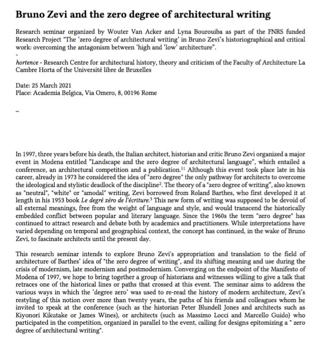 The concept of Landscape and Architecture at Modena and later Antonino Saggio Leggi l'intervento Read all the program Follow the Entire Conference in Video se non si vede il video, cliccare su "9 risposte di Wouter".