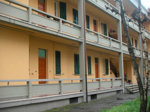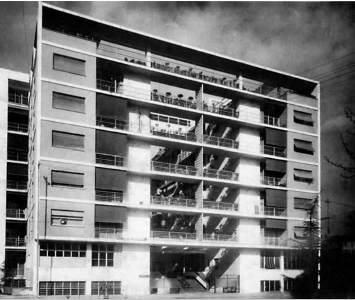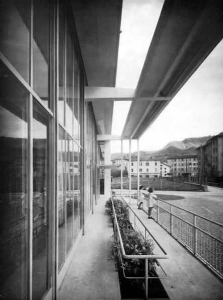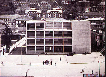 ....Il prospetto a nord è una delle composizioni più belle di Terragni. Un blocco solcato da tre lunghe asole si distacca dalla parete retrostante