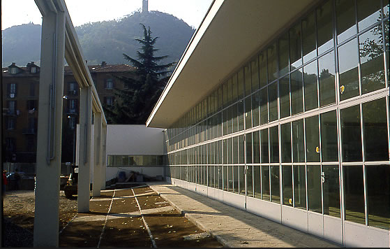 ..L'asilo condivide con la villa il ruolo indipendente che gioca il telaio, ma assume nel rapporto con la natura un nuovo accento.
