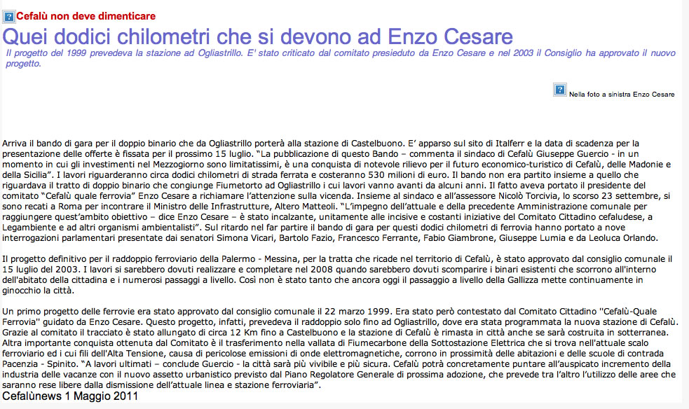 7 Mariella Di Giovanni, "Una strada nel verde sulle dismesse rotaie tra Gesso e Oliveri"", in «Gazzetta del Sud», 30 05 2010. URL consultato in data 31-05-2010
