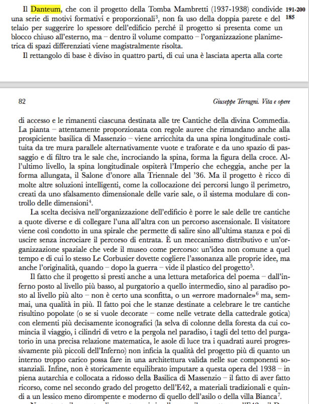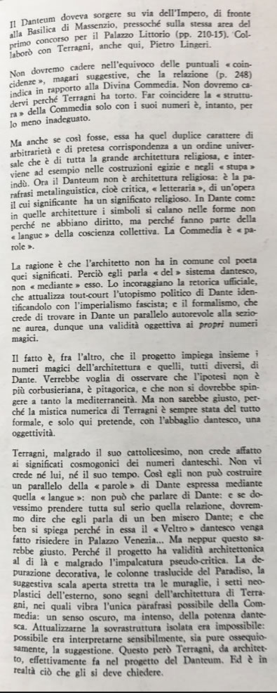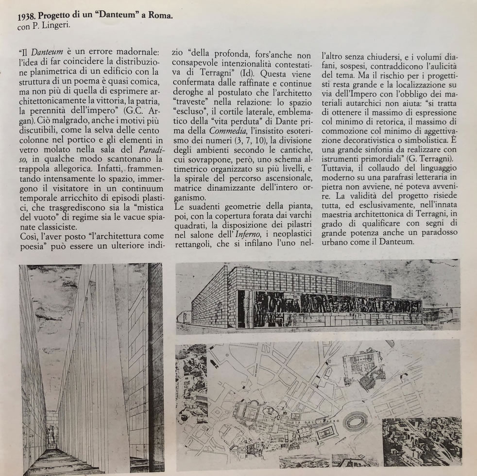In realtà il più critico sul Danteum è forse Gabriele Milelli nella sua scheda nellOpera Completa a cura di Giorgio Ciucci.