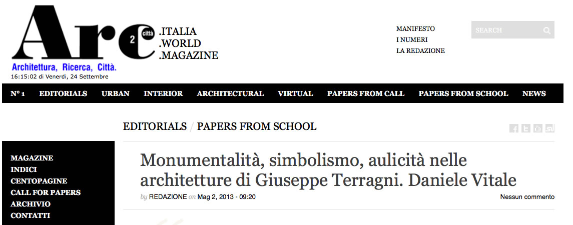 Monumentalità, simbolismo, aulicità nelle architetture di Giuseppe Terragni. Daniele Vitale in ARC 2013