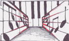 La parte sperimentale consiste invece in una simulazione di interattività tra musica e immagini: in pratica immagino che ogni nota abbia una configurazione geometrica ben precisa e che determini univocamente e sincronicamente una composizione di oggetti ( che si manifesta sottoforma di immagini animate ), che possono essere oggetti architettonici.