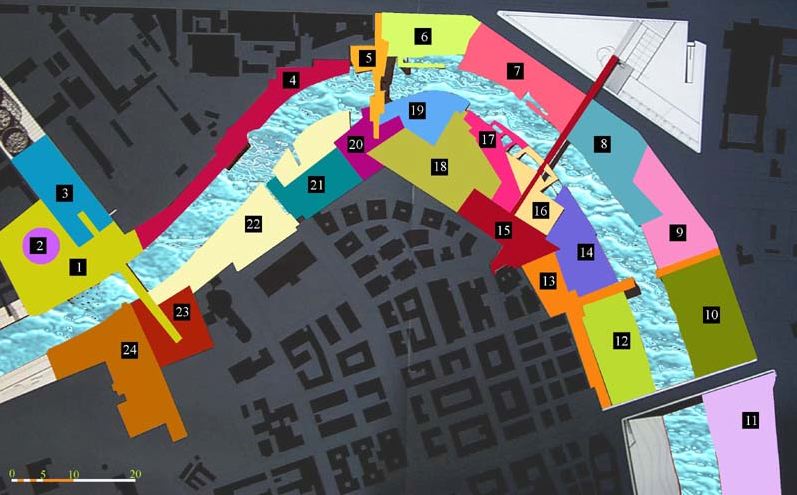 Water is the most dynamic element we can imagine, and the flux concept is an intriguing interpretative key, especially if related with the river and it’s relation to the city. The choice of a thermal pavillion as a design assignment in the city of Rome, is the intersection point between a traditional use of water, lost in time, and the need to discover a strong relation with the Tevere river, using a dynamic path from the city level to the river level.