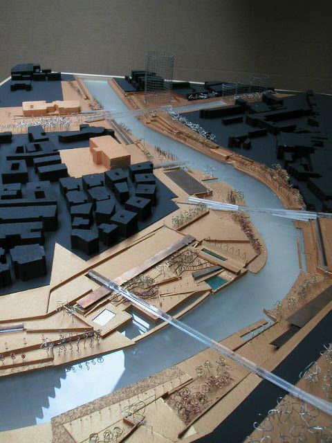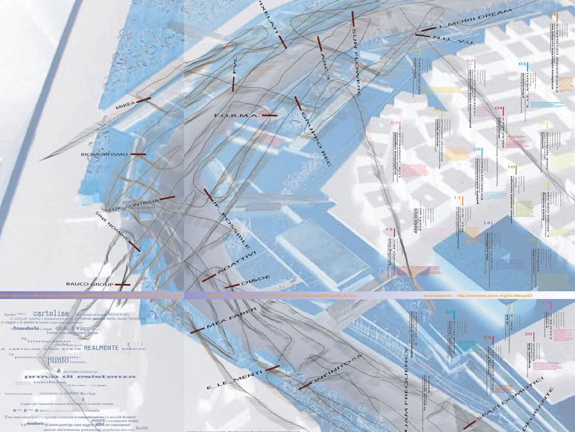 The final work produced in 2003 by Antonino Saggio's Class at Rome La Sapienza is called Texpo and proposed a large virtual exhibit on the banks of the Tiber, In the Ostiense area, between the Gasometer to the north and the Marconi bridge to the south. They are twenty-five projects/installations, each located in a specific site inside a harmonic master plan that redesigns the banks of the Tiber as a series of emerging thresholds, generating areas with various shapes and bents, Each project/installation is characterized by a series of aspects which can be outlined as follows.