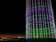 A “scenic machine” as a landmark for the city of Rome. The nebulization and projection systems, lights and sounds are studied independently as  technical devices and then mounted together to obtain different performances. A capsule rises and descends slowly in the centre of the gasometer