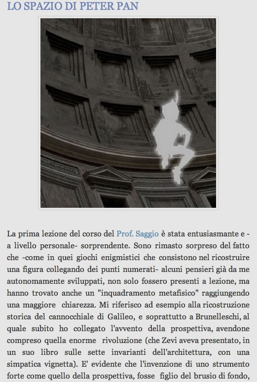 Quest'anno le lezioni del Corso possono essere sgeuite in formato audio sul Blog con link alle immagini o scaricate sull mp3 player attraverso Itunes Music Store oppure dalla Home page del corso