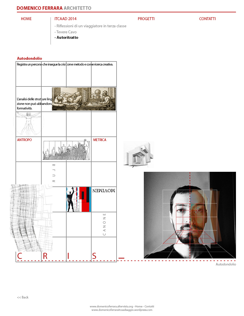 Ogni anno ad aprile nelle aule della Facoltà di Architettura di Roma accade una fioritura. E' quella degli autoritratti. Li facciamo dal 2000 e oggi sono forse 850. Eppure ogni volta, come la vita stessa, si rinnovano. I corsisti pensano criticamente a se stessi intessendo un rapporto con Crisi, Modernità e Information Technonolgy. Per alcuni studenti, elemento fondamentale dell'Autoritratto, è il tema d'anno Tevere cavo. Il lavoro conclude il secondo ciclo del Corso "La digitalizzazione delle immagini. Il mondo bidimensionale."