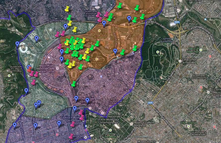 in Un area di Tevere cavo tra quelle indicate in violetto.
