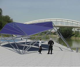 La crisi che affrontiamo con il nostro progetto è letteralmente “invisibile”. La città di Roma si è progressivamente allontanata dal suo fiume, perdendo con esso qualsiasi tipo di contatto. Da questa osservazione nasce l’idea di realizzare un “acquedotto ribaltato”, intendendo un nuovo sistema di connessione che sia rovesciato sia a livello formale che a livello funzionale a  quello tradizionale. Il suo compito sarà infatti quello di portare la città all’acqua, favorendo  la riscoperta del fiume dal punto di vista percettivo, cognitivo e interattivo. Un nuovo sistema di accessibilità, strettamente connesso all’Information technology favorirà diverse attività sulle sponde. La forza del progetto è legata alla sua possibilità di riproduzione nei punti di maggiore “invisibilità” del Tevere.