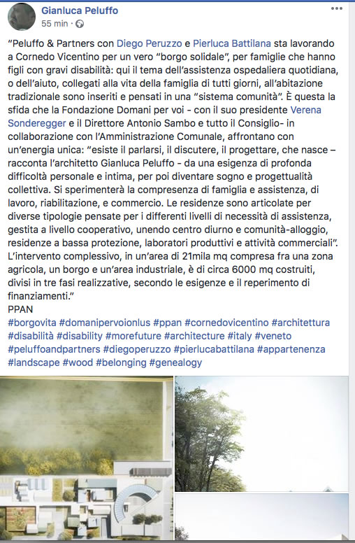 L'architetto Gianluca Peluffo descrive un progetto di "Borgo Solidale per famiglie con persone con gravi disabiltà" Un caso perfettamente in linea ocn quanto abbiamo discusso