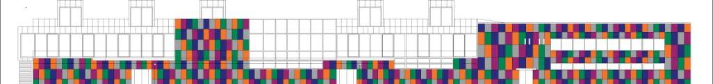 E3. Nel medesimo prospetto una volta scelto elaborare una griglia di possibili moduli e ritmi con fili e proporzioni Scala 1:100)