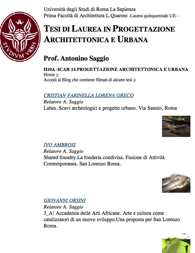 Ricordatevi sempre che da questo link potete accedere a tutte le tesi di laurea, relatore Saggio, forniscono una ampia casistica di modalità di rappresentazzione-