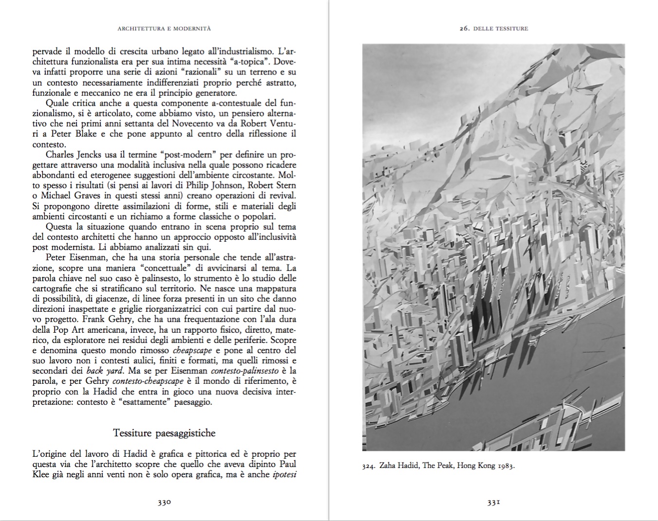 la formazione della scacchiera con un edificio comparabile scelto all'interno del libro "Architettura e modernità"
