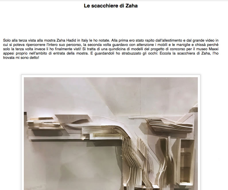 Vedi il lavoro di Carme Pinos, vedi il sito !!! come qui vedete ogni progetto è presentato non con una foto ma con uno schema! questo schema è allo stesso tempo IL BANG (la più forte caratteristica spaziale) ma può essere anche inteso come fosse lo scehma grafico di una scacchiera. Esso infatti come si scoprireà nello stesso progetto consnte molte variazioni--