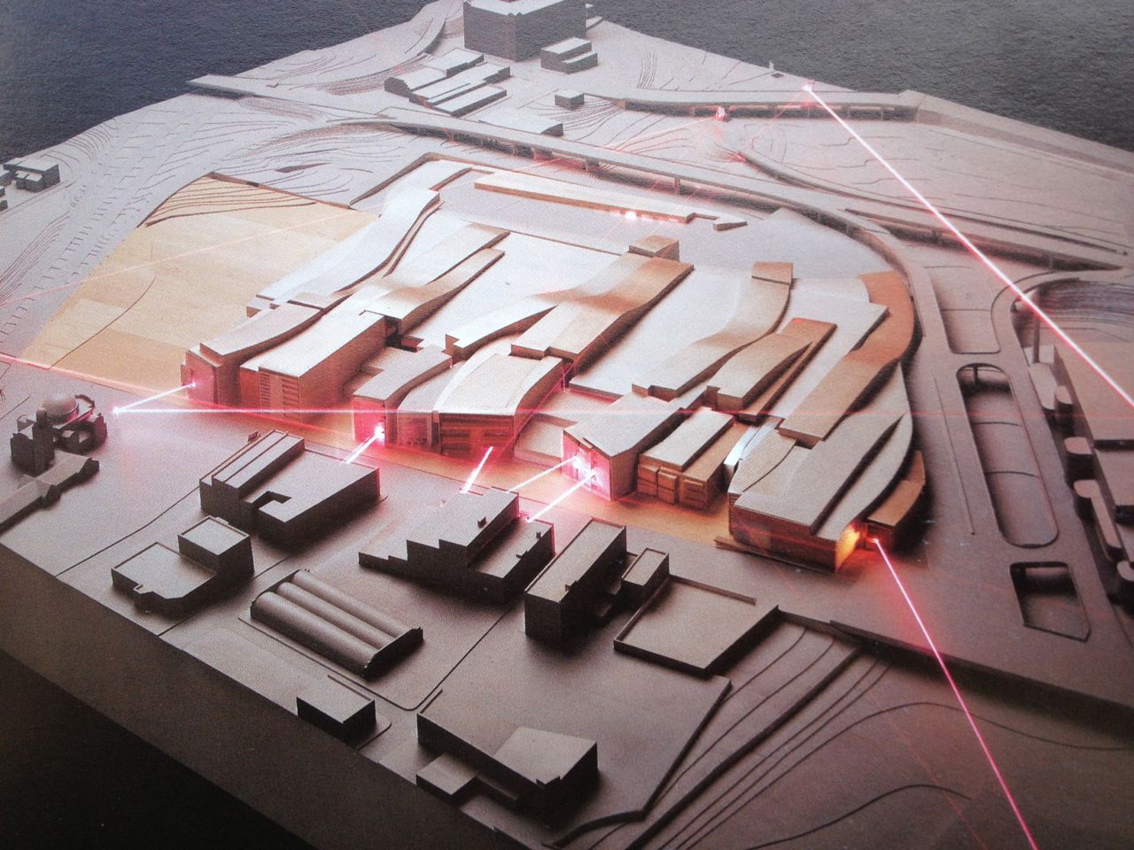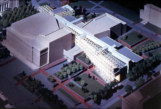 ...tra gli edifici preesistenti penetra una maglia reticolare tridimensionale; una costruzione-percorso che trasforma lo spazio di risulta in nuovo fulcro, simbolico e funzionale, del progetto. Lungo la rampa che vi scorre, si snodano i percorsi e i fatti espositivi, si accede agli edifici esistenti sui due lati e alle estremità alle attrezzature richieste dal programma. L’idea dello spazio “tra” le cose come strategia di progetto (lo chiamerà, teorizzandolo anche negli scritti, «il between») fa qui la prima convincente apparizione. p. 40