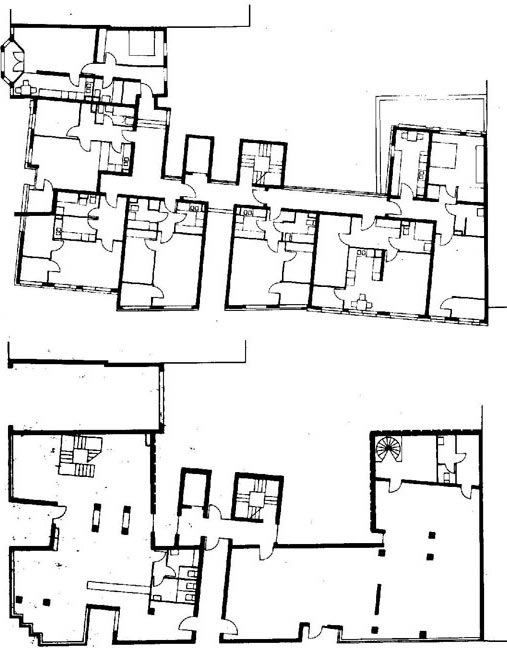 ...L’opera ripresenta l’idea di frattura, di lacerazione sia nei tracciati con cui è incisa l’elevazione che nella dinamica frammentazione delle masse. ... Gli appartamenti sono serviti da una scala comune posta nel retro e sono distribuiti da un ballatoio che si ripete nei sette piani.