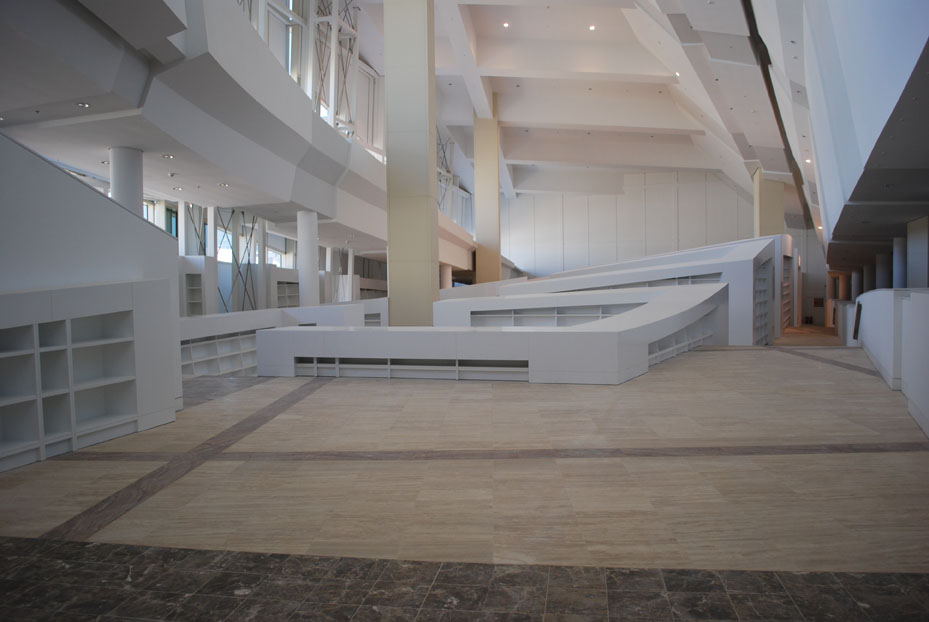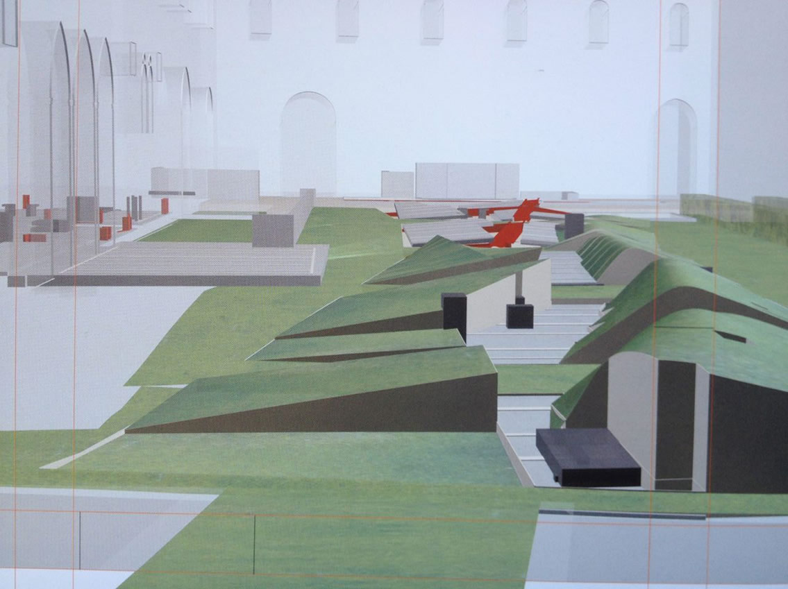 Alla base del progetto questa volta non sono i meccanismi sintattici della architettura di carta, ma appunto l’idea dello sterro. Per cui l’edificio, con le parole dell’architetto, è come «sollevato» da un terreno archeologico: le masse «sono letteralmente fossili fuoriusciti dal piano orizzontale del terreno».