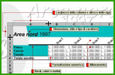 Il foglio di lavoro è formato da un numero indefinito di celle organizzate in righe e colonne. Ognuna di